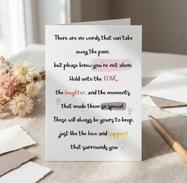 The truth is, the message inside the card is what people remember most. A few well chosen words can be kept for years, reread on hard days, and treasured long after the occasion has passed.